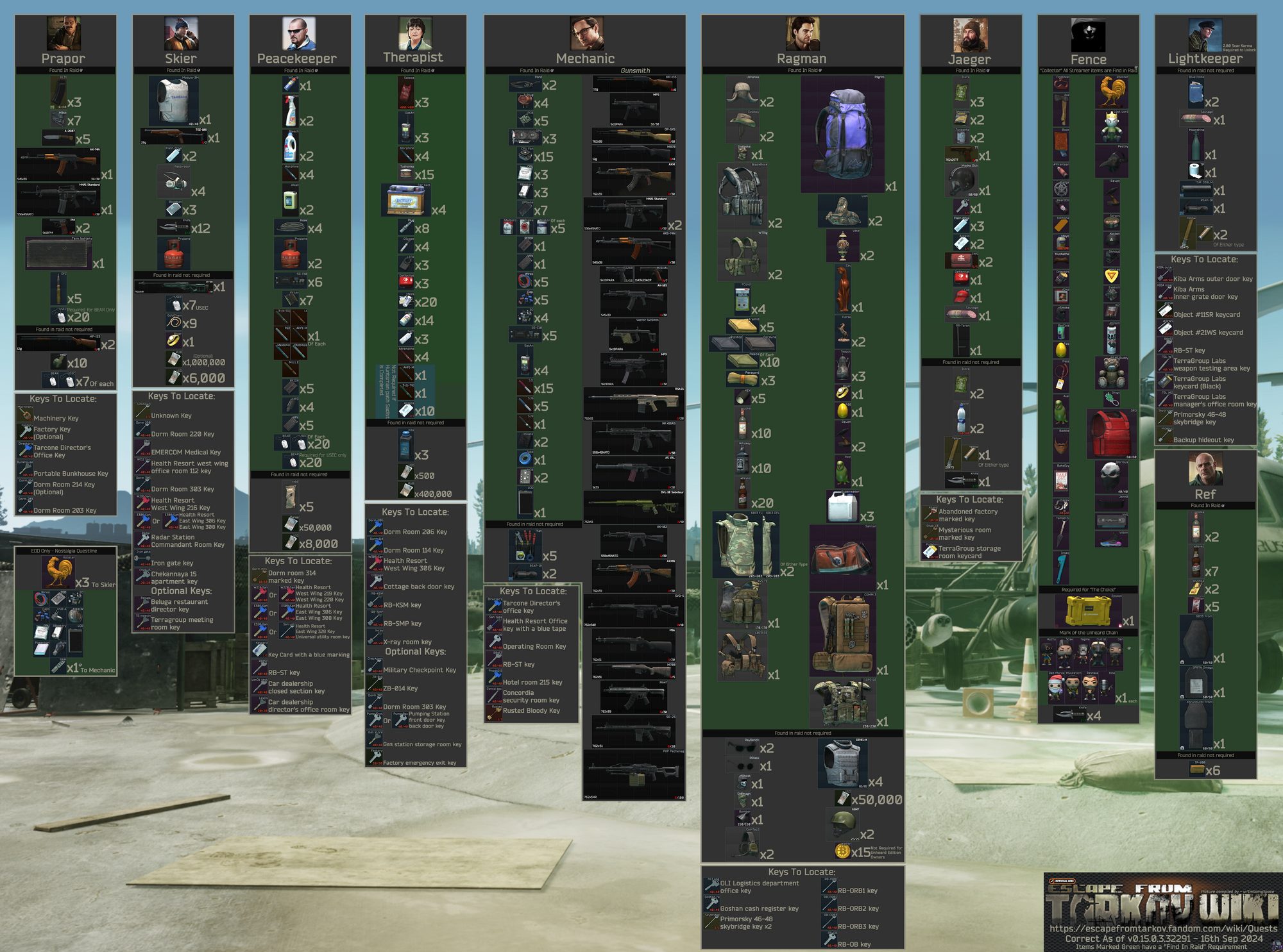 Eft Quest Boost Carry Trader Loyalty Boost Service 24 7 Online from www.d3hell.com How to unlock peacekeeper's quest line!! In this video i show y'all how to unlock. :d how are you doing today?!?! Both of these quests are available at skier. The peacekeeper quests are unlocked by completing the 'friend from the west part 1' and 'friend from … Both quests are easy to complete but it should be noted that you must have $6000 on hand for skier to … Jun 06, 2020 · if you would like to watch me live you can catch me at: To unlock the peacekeeper quests in escape from tarkov you need to complete friend from the west part 1' and 'friend from the west part 2.